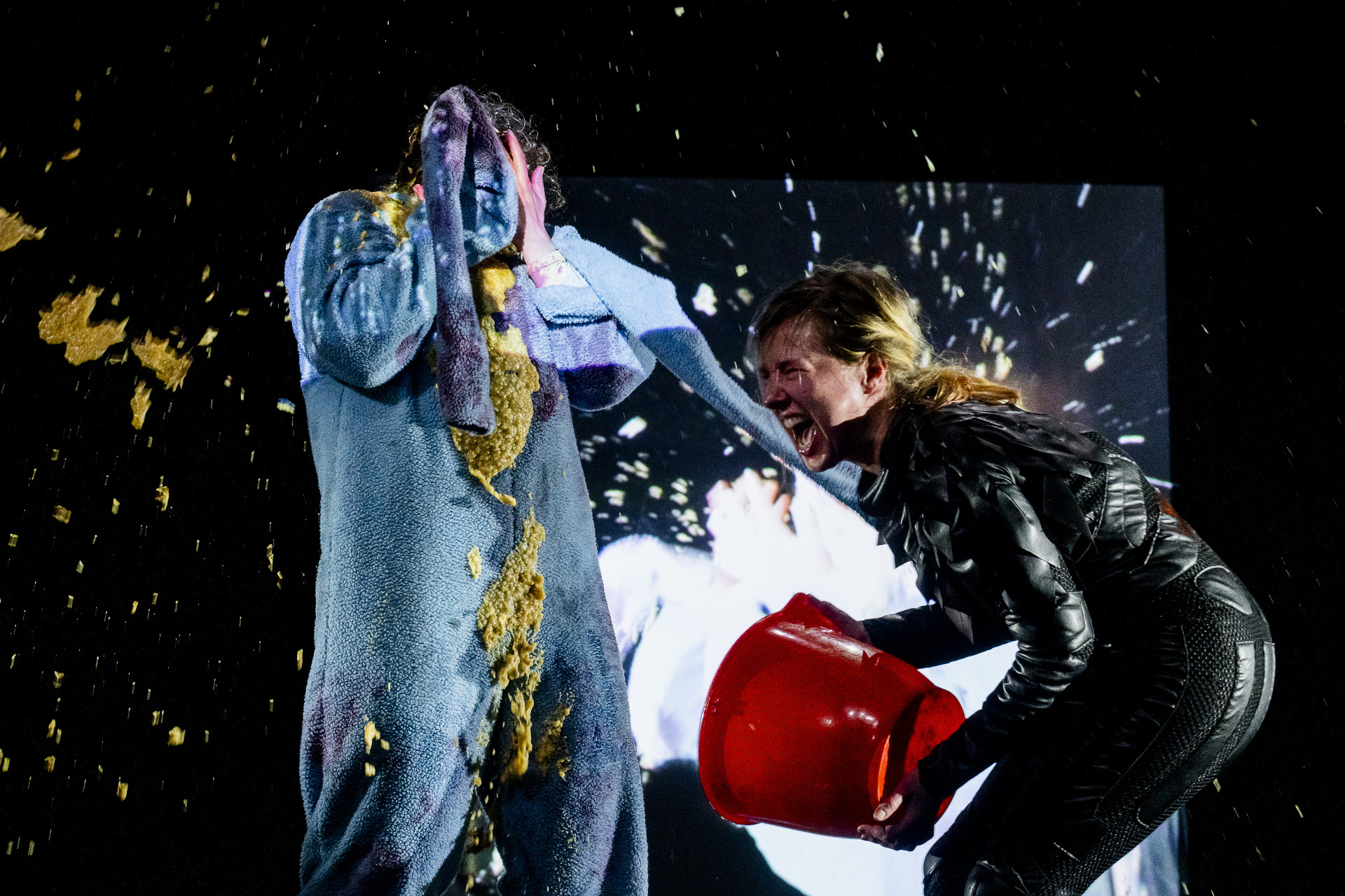 Během předposledního festivalového dne láká DF na další highlight německé provenience – koprodukci v ČR premiérově hostujícího Theaterhaus Jena a mezinárodních kolektivů Wunderbaum & Post Paradies Útok psím lejnem v režii Waltera Barta. Představení získalo v anketě měsíčníku Theater Heute nejprestižnější možné ocenění „Inscenace roku 2024“.