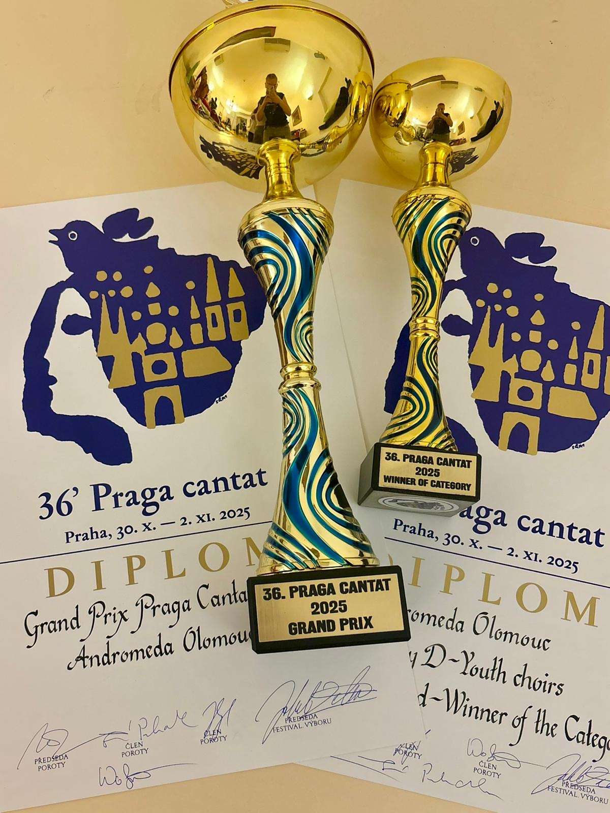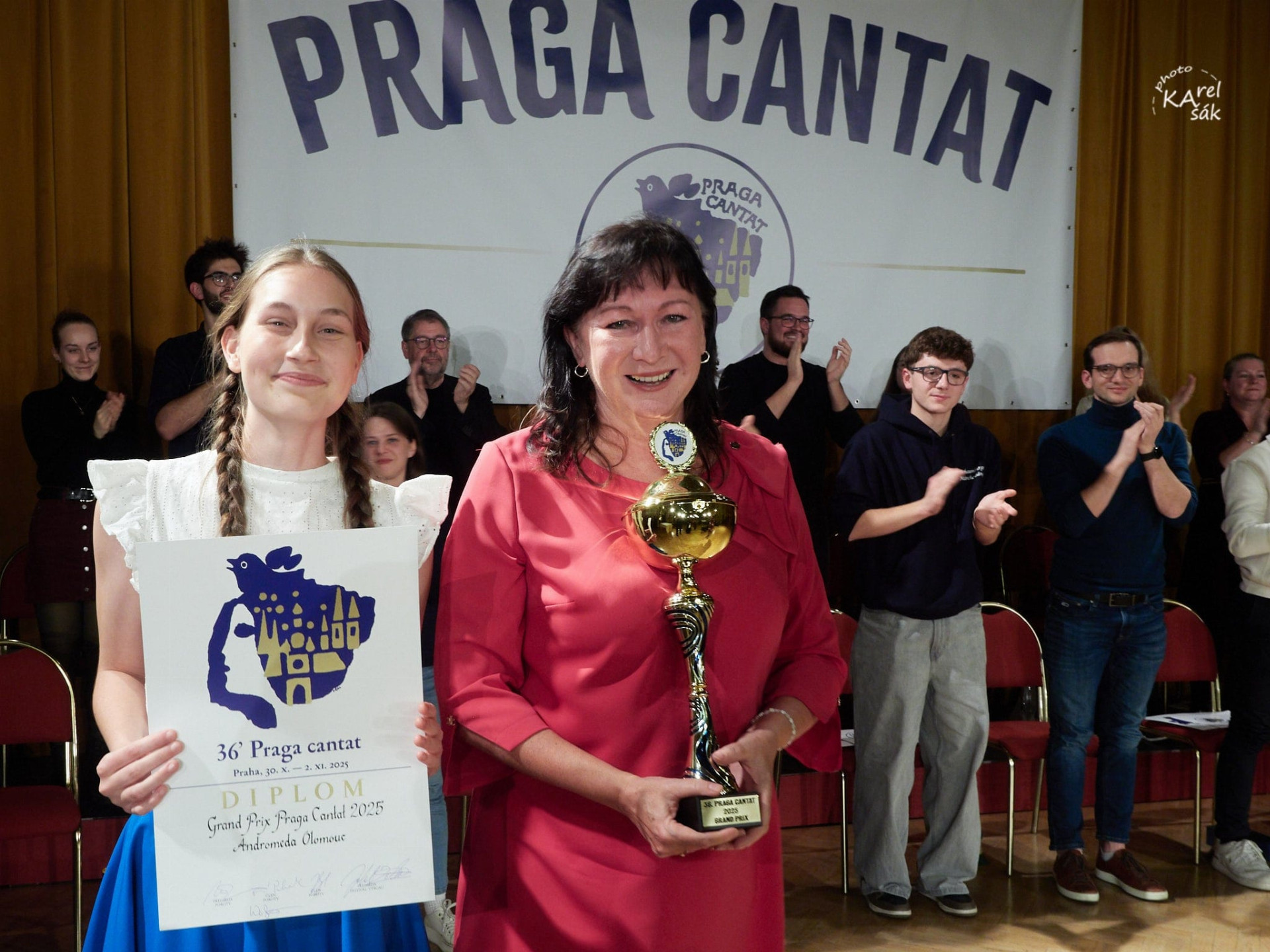 Slavnostní vyhlášení výsledků na závěrečném večeru si Andromeda připisuje jako další nezapomenutelný zážitek. „Absolutním vítězem 36. ročníku Praga Cantat a vítězem Grand Prix 2025 se stává……ANDROMEDA OLOMOUC!“ Po těchto slovech ředitele festivalu Jakuba Zichy už následoval jen jásot a mnoho slz dojetí. „Je to tak velký úspěch! V tu chvíli tomu asi nikdo z nás nemohl pořádně uvěřit. A ještě teď po návratu to zpracováváme. Za posledních dvanáct měsíců třikrát účast v Grand Prix, z toho dvě absolutní vítězství a jedno nám uniklo o jediný bod. To se zdá až neuvěřitelné. Andromeda už není malý olomoucký sbor, začíná se o ní vědět a to je nádherná satisfakce. Všechny tyto úspěchy jsou pro děti odměnou za úsilí, čas a srdce, které sboru věnují. To jsou celoživotní zážitky. Jsem vděčná a na děti neskutečně hrdá,“ neskrývá dojetí sbormistryně Hana Vyroubalová.