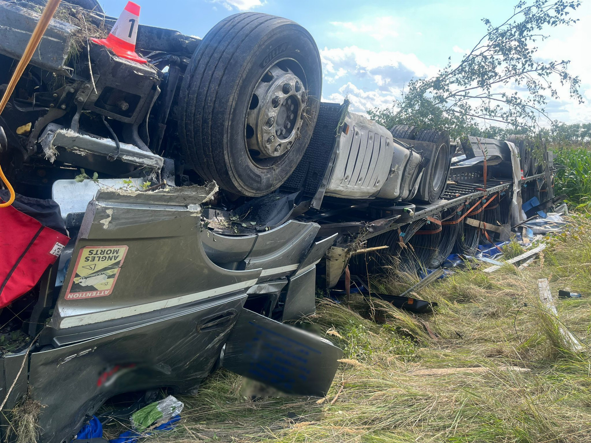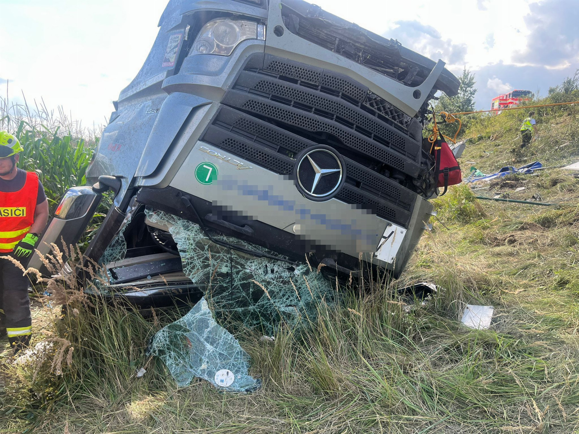 Na místě byl zraněný řidič kamionu, muž ve středním věku. Při nehodě a pádu těžkého vozidla utrpěl středně těžká poranění, konkrétně úraz hlavy, otřes mozku a částečnou amputaci ucha. „Muž byl letecky transportován ve stabilizovaném stavu do Fakultní nemocnice Olomouc na oddělení urgentního příjmu,“ uvedla mluvčí Zdravotnické záchranné služby Olomouckého kraje Lucie Mikisková.