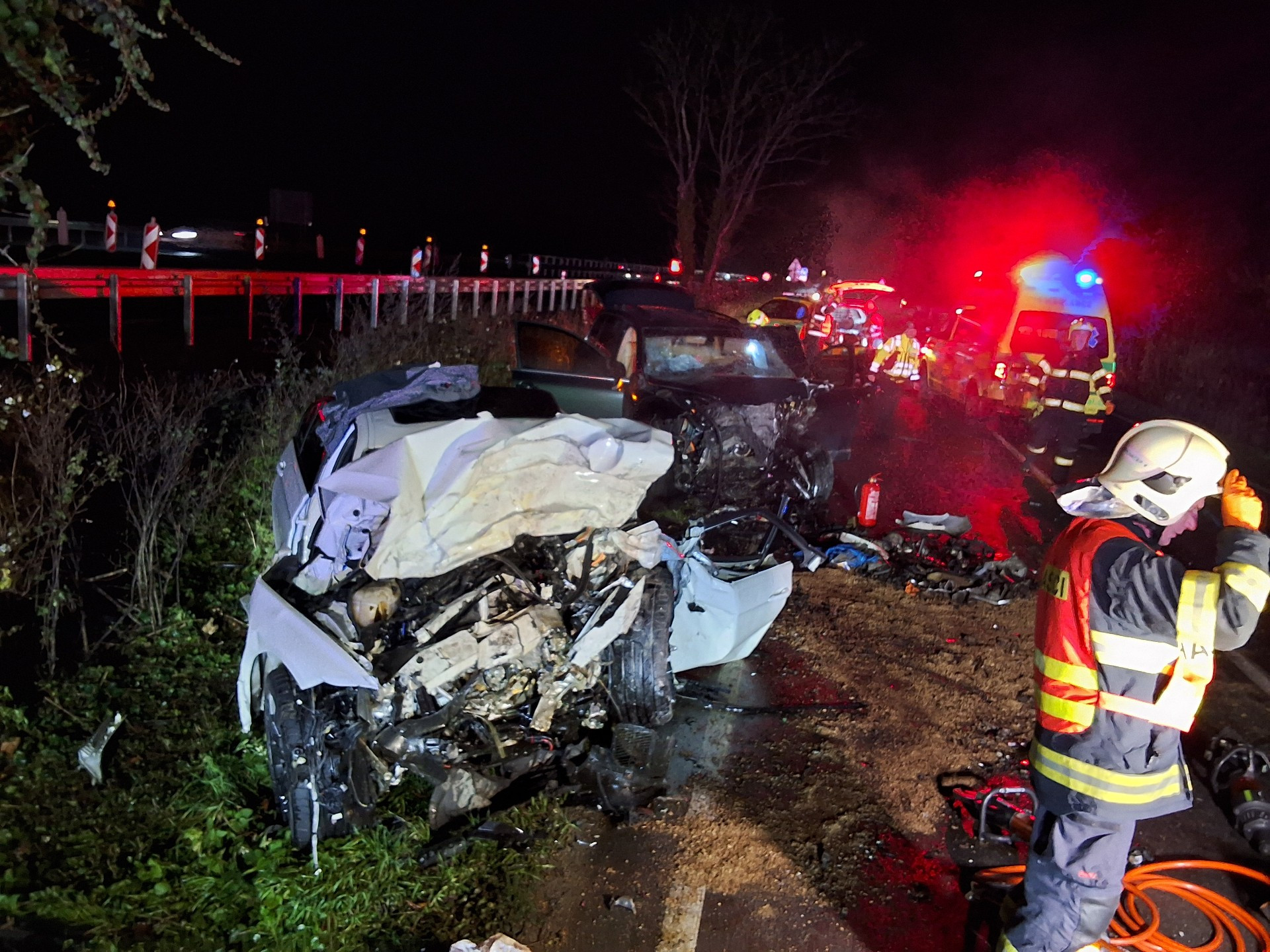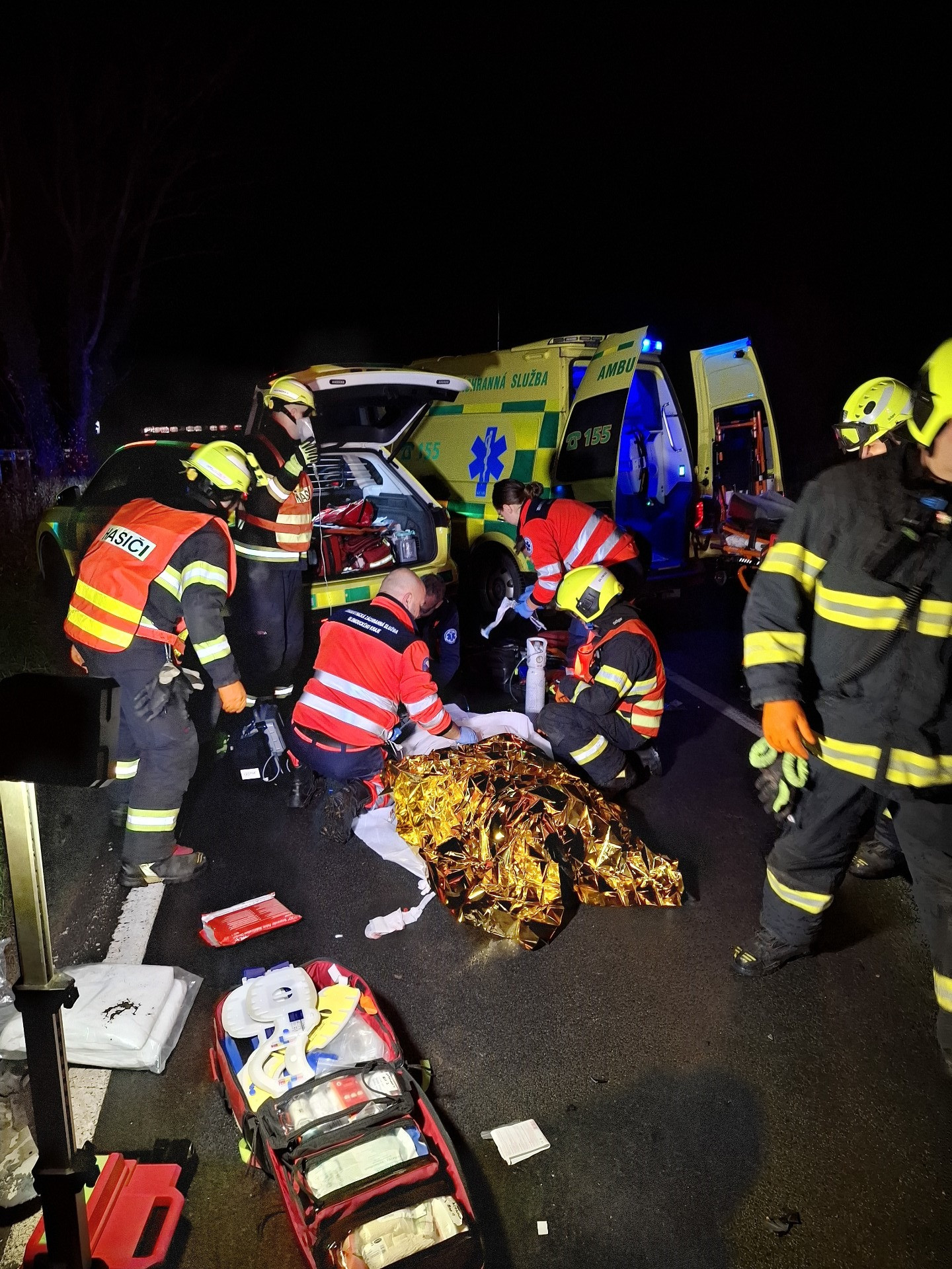 Na místě zasahovala záchranka a také hasiči, silnice byla až do nedělních ranních hodin uzavřená. Hasiči museli rychle vyprostit zraněné ze zcela zdemolovaných vozidel. „Za pomoci hydraulických rozpínáků jsme rozevřeli prostor pod přístrojovou deskou a vyprostili dvě osoby. Dále jsme ustřihli zadní dveře, B sloupky a vytáhli další dvě osoby na páteřní desce a předali je ZZS. Provedli jsme stabilizaci vozidel, protipožární opatření, zajistili unik provozních kapalin. Aktuálně uklízíme vozovku,“ popsal zásah profesionálních hasičů jejich mluvčí Josef Koláček.
