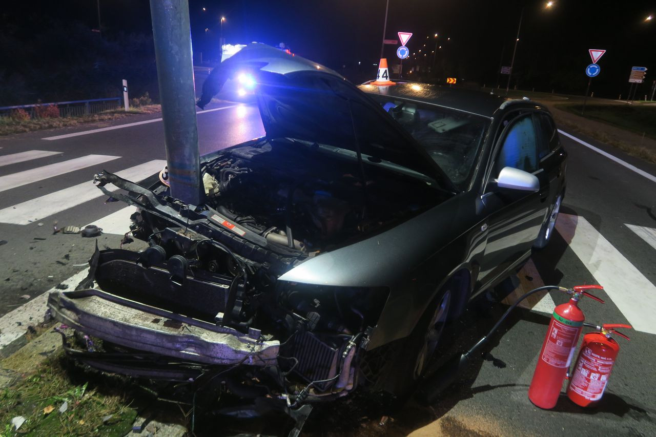 "Vlivem toho vyjel z jízdního pruhu vlevo na ochranný ostrůvek, kde narazil přední částí auta do sloupu veřejného osvětlení. Hlídka u řidiče provedla dechovou zkoušku, která byla pozitivní s hodnotou 1,94% alkoholu v dechu a opakovaná dechová zkouška měla hodnotu 2,09%. Řidič s dechovými zkouškami souhlasil a odběr krve nežádal," popsala situaci mluvčí Policie ČR Miluše Zajícová.