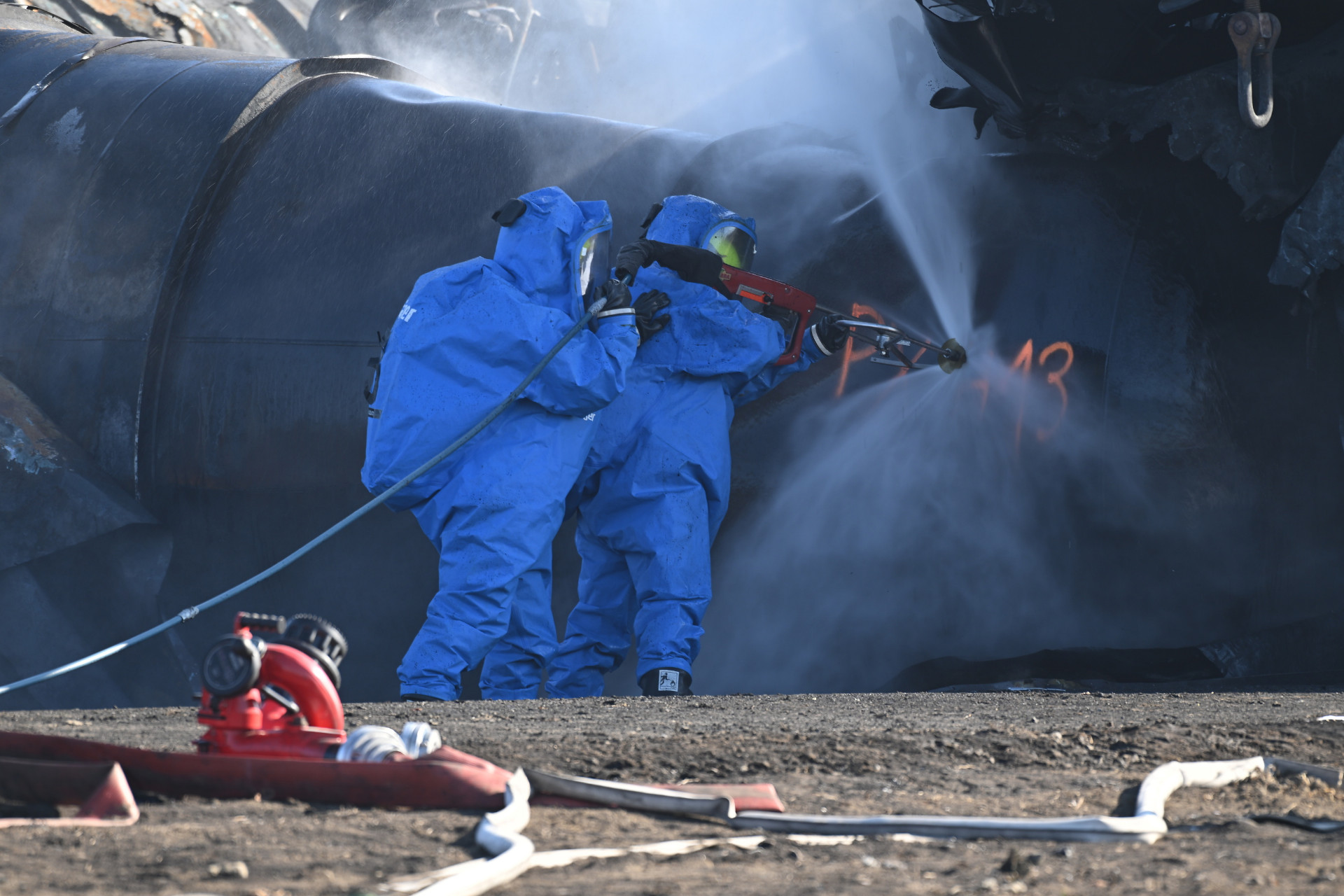 Hasiči museli odstraňovat vraky cisteren, přečerpávat benzen a zamezit jeho dalšímu šíření. Do některých vagónů vyřezávali přístupové a větrací otvory pomocí speciálního zařízení CCS COBRA, a to v protichemických přetlakových oblecích. K omezení výbušných koncentrací uvnitř cisteren byla inovativně využita pára z parního generátoru dieselové lokomotivy. Situaci nepřetržitě monitorovaly drony s termovizí i detektory nebezpečných látek.